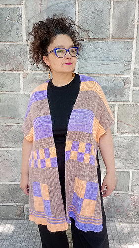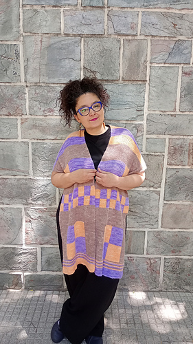 Cada bloque, cada franja y cada color dialogan entre sí, construyendo un diseño que se ordena y se despliega sobre el cuerpo con naturalidad. Se teje en plano y usando la técnica de INTARSIA, lo que nos permitirá hacer bloques de color en paralelo, usando varios ovillos al mismo tiempo.