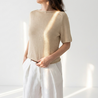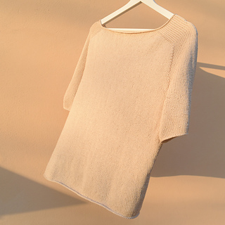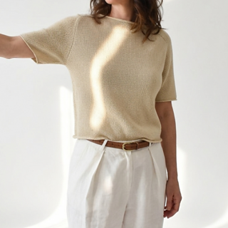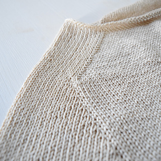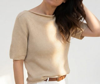 SIMI TEE is worked in one piece, from the top down, using circular needles, entirely in stockinette stitch. Only one stitch—knit—and a single type of increase are used on all sides. This makes the project very simple and suitable even for beginners.