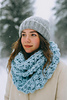 The scarf is designed at 16 inches wide for a cozy, full wrap and reaches 40 inches in length before seaming, forming a comfortable, stylish infinity loop. The texture pops beautifully with Lion Brand Wool-Ease Thick & Quick, making it perfect for everyday wear or gifting.