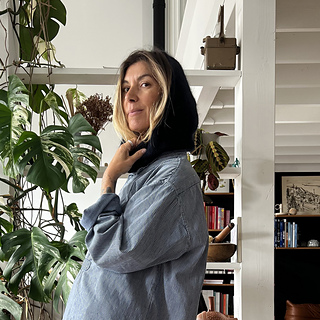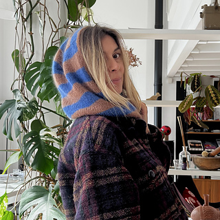 SIMONE is a bold and cozy maxi hood, designed as both a hood and a scarf.