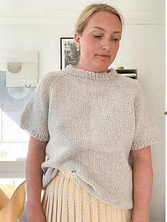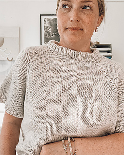 Simpel Raglan Tee er en flatterende bluse med korte ærmer, som er nem at gå til for de fleste med lidt strikkekyndighed.