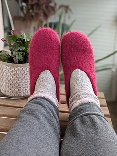 Even if your gauge is a bit off, your tension isn’t perfect, or your stitches look a little wonky — don’t stress! Felting evens everything out and shapes the slippers beautifully.