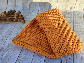 The size of finished bag depends on the yarn and hook size. My clutch: