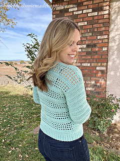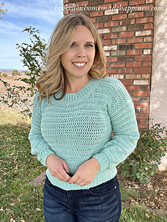 For this Simple Eyelet Sweater Crochet Pattern, there is a full video tutorial! The front of the sweater is a solid piece, made with all double crochet. The back has the open, see through look that is just so cute! I like to wear it with a brightly color tank top. Even just a sports bra would be adorable!