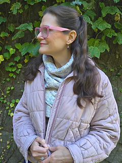 This is a cowl with a simple texture to compliment the speckled yarns that they dyed for it. The beautiful feel of this yarn with the simple stitches make it a wonderful traveling pattern and gift.