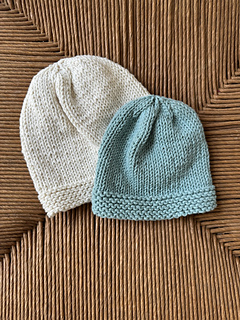 A simple pattern that takes a small amount of yarn. Knits up quickly, and the smooth garter brim means a nice flat surface for baby to rest her head.