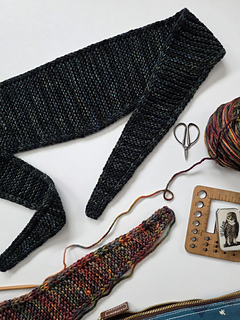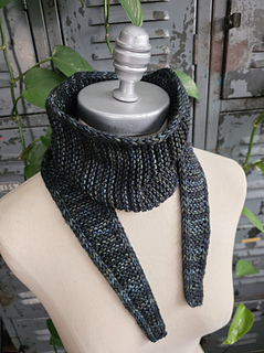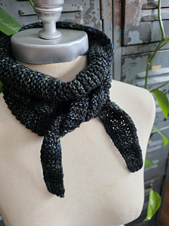 I work in my little shed shop in the summertime, selling yarn and finished knitwear. It’s often too warm for heavy knits during the summer months while I am there, but I find myself still wanting to wear knits to showcase the great selection of yarn I sell. I created this pattern to have a cute little worsted weight neck scarf that goes with linen dresses or t-shirts, without making me feel too hot. I sized it to be similar to wearing a cotton bandana.