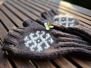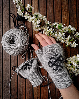 Mitenki z prostym motywem roosimine. Idealne do nauki tej techniki. Motyw pochodzi z magazynu „Nowe Mody” 1893 roku, udostępnionego przez Annę Bednarz, prowadzącą portal Muzeum Dziewiarstwa. Wzór dostępny dla uczestników prowadzonych przeze mnie warsztatów z techniki roosimine.