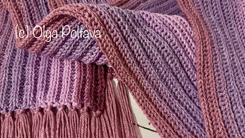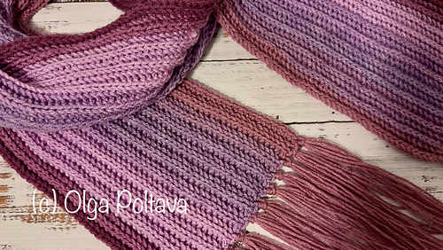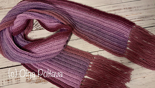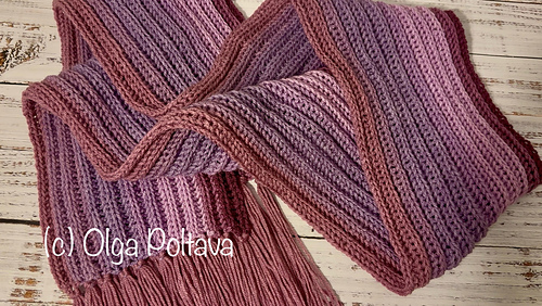 The scarf is crocheted along the length, not along the width. That’s how those long stripes that resemble knitted fabric are formed.