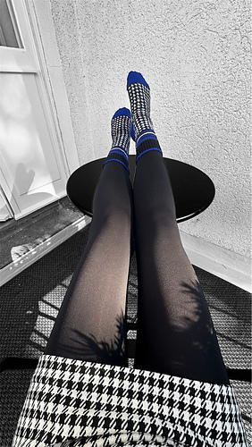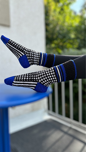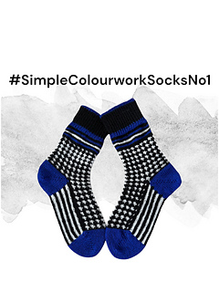 The #SimpleColourworkSocksNo1 are socks with a very simple pattern. The cuff is worked in an elastic ribbing. The sock is designed with a simple pattern. Add a shadow-wrap-heel and end with the toe which is knit with a shadow-wrap-tip.