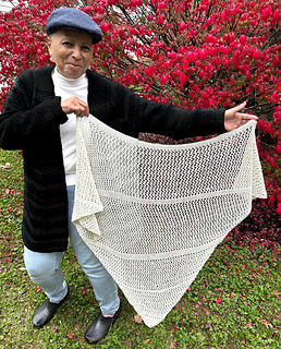 I wanted to design a piece for years and decided better late than never. I saw this yarn by Miss Babs and at first, I thought I’d design a bridal shawl. As I began to work the design and use this beautiful yarn, the simplicity and flow made it clear that the shawl could be worn anytime. I love all things sparkly and Miss Babs Estrellita Fingering Weight yarn was the perfect choice. It’s a fast and fun knit. It can also be made with different weight yarns but know that the size will be affected. I hope you’re as excited about my first pattern as I am. Happy knitting!