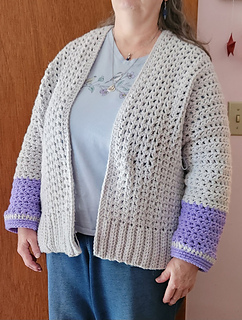 Cardigan worked in pieces from the center out: Body (Rows), Arms (Joined Rounds), Seams (Sew)