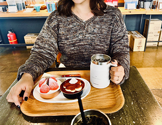 The sweater is designed to have drop shoulders for oversized fit and to be worn with 10~20 cm more of positive ease than your usual size.