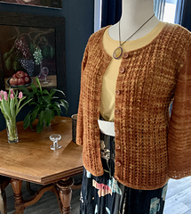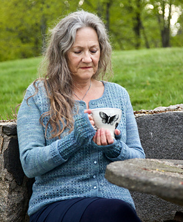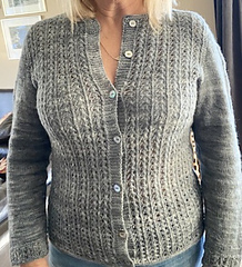 Sinajakken er en feminin cardigan med smale ermer. Den kan også strikkes med videre ermer og mønsteret gir deg begge valgene. Bolen strikkes i hullmønster, mens ermene strikkes i glattstrikk og avsluttes med hullmønster. Sinajakken har 3/4 lange ermer, men de kan enkelt strikkes lengre. Bolen strikkes nedenfra og opp og frem og tilbake, mens ermene strikkes rundt ovenfra og ned. Fordelen med det er at ermetoppen passer perfekt i ermeåpningen, og det gir ingen montering, bortsett fra å feste tråder. Velg en størrelse nærmest din overvidde. Garnet er tøyelig så heller litt negativ vidde enn at den blir for vid.