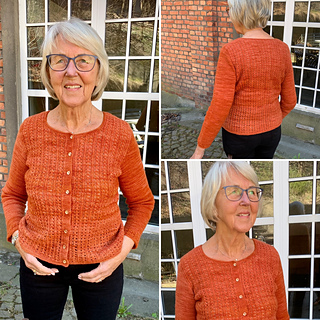 The Sina cardigan is a feminine cardigan with narrow sleeves. It can also be knitted with wider sleeves and the pattern gives you both options. The body is knitted in lace pattern, while the sleeves are knitted in stocking stitch and finished with lace pattern. The Sina jacket has 3/4 length sleeves, but they can easily be knitted longer. The body is knitted from the bottom up and back and forth, while the sleeves are knitted in the round from the top down. The advantage of this is that the sleeve fits perfectly in the sleeve opening, and it does not require any sewing, except for mending threads. The jacket is tight-fitting and can have up to 4 cm of negative ease in the recommended yarn.