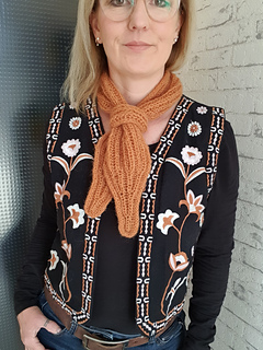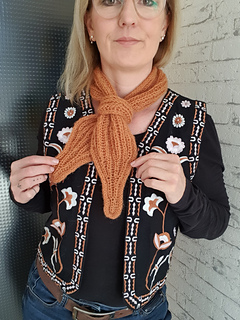 Er lässt sich in verschiedenen Garnstärken und Längen stricken – ob als feines Halstuch zum Blazer, als lässiger Winterschal oder als leichtes Accessoire über dem Mantel.
