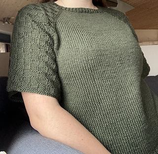 Blusen strikkes oppefra og ned med raglanudtagninger, hvilket gør det nemt at tilpasse længden undervejs. Den enkle halskant og det rene udtryk gør den til en alsidig basisbluse, mens ærmernes struktur tilfører et unikt og elegant touch.