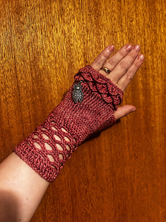 Sirens & Selkies Fingerless Mitts , by Pretty Twisted Knots. Let’s have an adventure in textured Crochet featuring Crocodile stitch, Front Post & Back Post crochet. My inspiration born of my love of Mythical wonders, the ocean, magic… and natures wonders. The textured stitches inspired by the deep… scales, gills, organic and fantasy.
