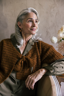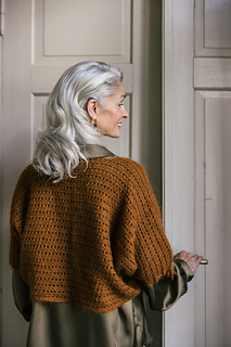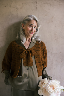 The Sirkka crochet bolero is a light garment which you will love to wear on a cosy and relaxed winter morning. Combine it with a dress and some elegant accessories for a more festive look. Crocheted using a mohair blend yarn, it’s a fun and easy project – and a surprisingly quick one, too. The sleeves are worked at the same time as the bodice. The fronts are tied together using an eye-catching bow.