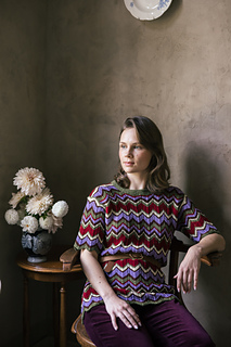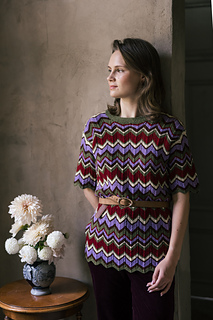 The Sirkku sweater features a playful zigzag pattern consisting of a variety of stripes. The light garment is knitted in pieces in garter stitch, with the lace decreases and yarn overs always on the right side. Designed by Sisko Sälpäkivi and knitted using the Wonder Wool 4PLY and Viola yarns, this sweater is a spirited combination of sweetness and charm – just like in the good old days.