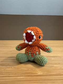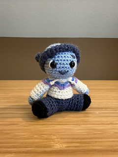 This pattern is for a doll base that can sit on your desk, shelf, or wherever! It ends up about 4 inches tall, and works up relatively quickly due to its smaller size.