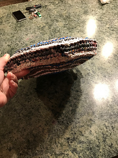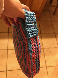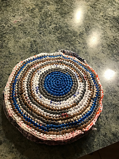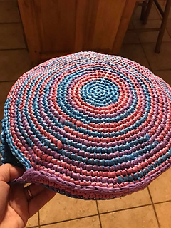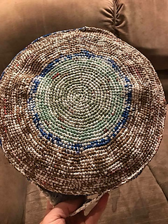 This pattern includes instructions on how to make plastic yarn (plarn) and then use it to make a crochet sit-upon.