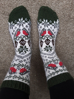 Mønstret er på norsk. Sokkene strikkes ovenfra og ned. De har hælkappe og felling til kile på hver side av foten.