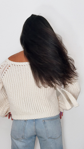 The Skye Sweater was inspired by the yarn itself. After working with Glory, its softness and drape inspired me to create an oversized crochet sweater with a knit-like look, a modern silhouette, and a relaxed fit, perfect to wear with a good pair of jeans.