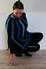 The sample here is size XL and used 12 balls of Pura Lana black (100% wool) as MC and one skein each of Scheepjes Luca (70% acryl, 30% wool), colours 07, 08 and 11 as CC.