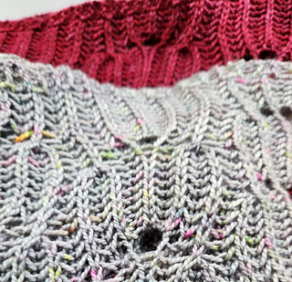 While stitch markers are not absolutely required, I found them extremely helpful to mark the yarnover placement. For the large shawl, the attached garter band took approximately 60 yards (15g of Wax Bean).