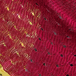 After knitting the shawl in Moonshine, I thought a larger size shawl would be great, with more repeats of the section mimicking the moon’s craters. So what should I make the larger version out of? Adella had just done a run of Burgundy Beam, and I thought that would make a beautiful blood moon version of Sleeping Satellite.