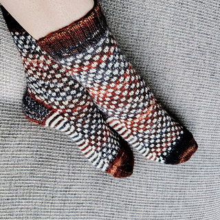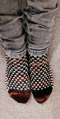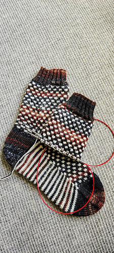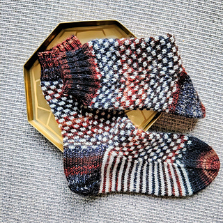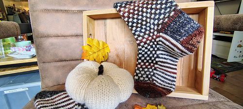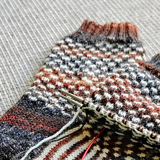 While the sun was at it’s fullest, I already had my thoughts leaning for all the autumn vibes. So I made myself some new socks, with a simple slip stitch pattern and some cozy autumn colors. The Slip Along Sock feature a mosaic colorwork pattern.