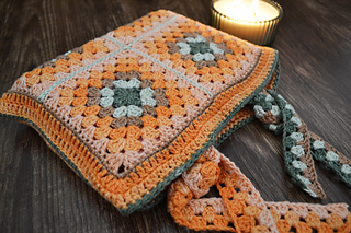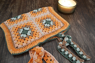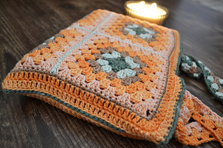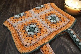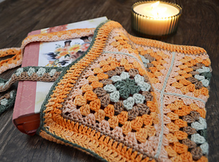 This book bag is made up of granny squares. I used Moya Shimmer yarn palette pack for this pattern. You can find all the relevant information on this yarn in the pattern.