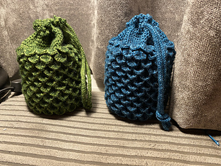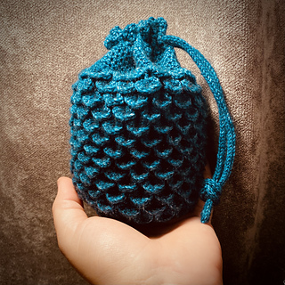 So, I took inspiration from an already existing pattern on Ravalry, and made any changes that were necessary to achieve my goal. I highly recommend looking up this original pattern if you are looking to make a larger bag, it’s called “XL dragonscale dice bag” by Jessica Ryan.