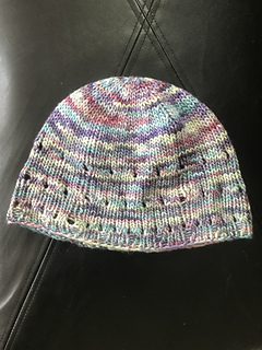 A fun eyelet hat. Light weight and stretchy but not floppy.