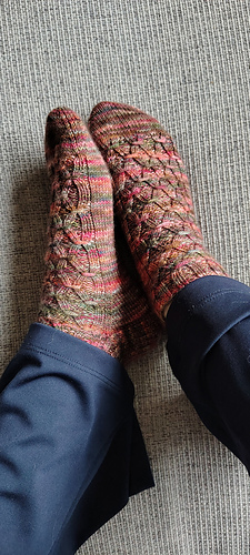 Think autumn walks, warm tea, and that satisfying moment when yarn and pattern truly meet. These socks are not just an accessory, but a small wearable work of art. Created stitch by stitch, with joy.