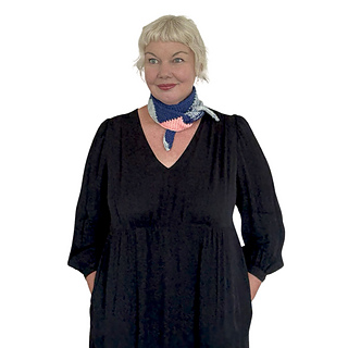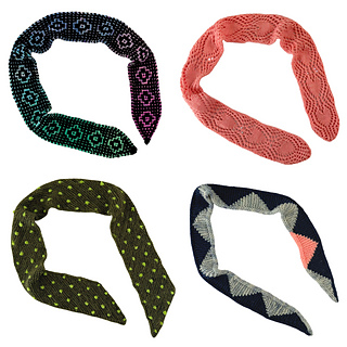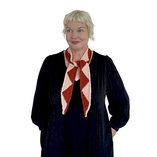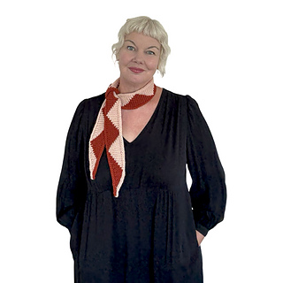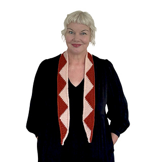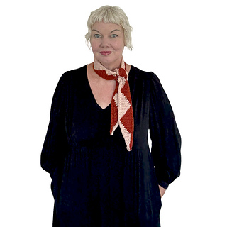 Knit a sweet narrow scarf with a fun intarsia serrated edge. Designed for DK weight yarn, choose two contrasting colours for the colourwork and add an optional bright pop of fun. Wear looped once or twice around the neck or as a hair scarf.