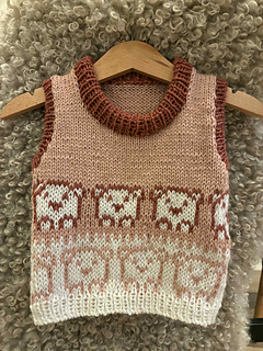 Vesten strikkes oppefra og ned. Arbejdet begynder med