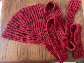 the sno cap hood is knit in brioche from end to end. you will start by making a long, skinny scarf. when it has reached the desire length, you’ll start working brioche increases and decreases to form the hood. the project is complete when the second end of the scarf is done.