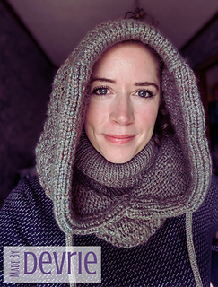 This Pattern is designed for an intermediate beginner knitter. Using about 250 yards of chunky weight yarn and US size 10 circular needles you will create the outside of the hood. you could also use two strands of medium weight yarn. The inside is created from one stand of medium weight yarn and a size 6 needle. The pattern is worked flat and in the round.