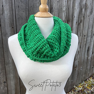 The Snow Drifter Cowl is a one size fits most pattern. All you need is about 400 yards of your favorite worsted weight yarn and crochet hook K (6.50 mm).