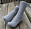 Snow Lily is a cuff down sock with a patterned fleegle-type heel (no picking up stitches!) and a short rounded toe. These socks were inspired by two warriors from The Elder Scrolls Online, Lyris Titanborn and Sai Sahan. I rarely get sappy about fictional couples, but I found Sai and Lyris’ deep affection and friendship very touching. “Snow Lily” is Sai’s nickname for Lyris, and the cable designs are inspired by her armour and long braid.