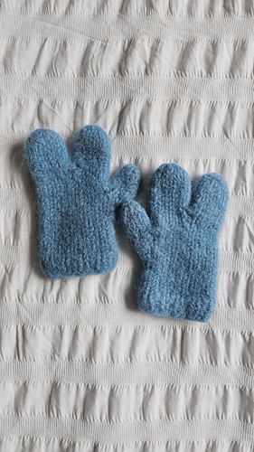 Vottene strikkes rundt med Magic Loop og toves i vaskemaskinen, slik at de får en myk, tett og slitesterk finish som holder varmen hele dagen. Et raskt og gøy prosjekt – og perfekt som et mini-me sett sammen med voksenversjonen.