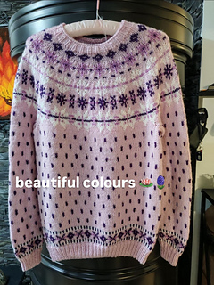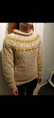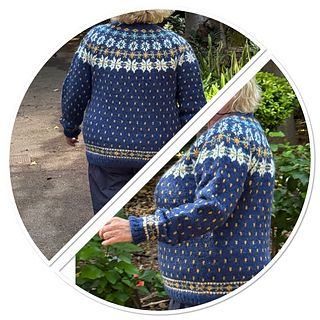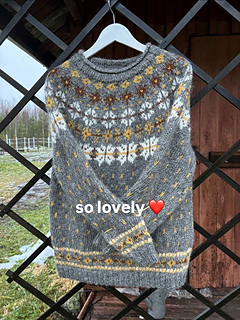 This is a bottom - up knitted yoke sweater that suites both men and women. It is easy to knit , only two colors in the needles at the same time. By changing colors you find many different versions in your favorite colors.