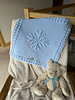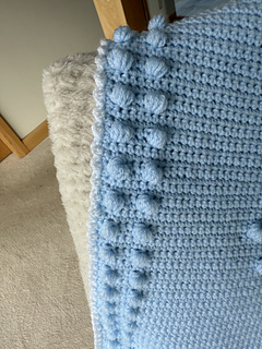 Moses basket/ pram size ~ 20 inches by 27 inches ~ using approximately just under 3 balls of 100g dk yarn.