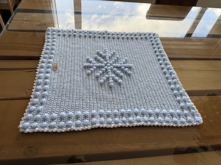 Car seat size ~ 20 inches by 21 inches ~ using approximately just under 1 & 1/2 balls of 100g dk yarn.