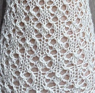 count goes back to normal in the next odd numbered row. Pay attention when you get to Row 5, that one seems to cause the most un-knitting if you get caught off guard. It’s a good idea to use a life line on row 12, at least for the first few pattern repeats. This pattern utilizes the vintage Snowflake stitch - not beginner friendly but beautiful and definitely worth the effort. If you enjoy knitting lace but are not a fan of charts this is the pattern for you. Easy to follow words and a 12 row repeat. Every other row is a knit around.
