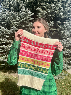 The Snowflake Sparkle Snood is the perfect project to knit for Christmas, offering both beauty and warmth in every stitch. Featuring a stunning snowflake colorwork design in Moonglow Yarn Co’s gorgeous DK Merry and Bright 7-color winter set, this cowl/hood (snood) is crafted to let the intricate colorwork shine, whether worn as a cozy hood or a classic cowl. The thoughtful bottom ribbing can be folded inside for double-layered warmth or pulled snugly over the face on chilly days. With its functional drawstring, you’ll stay extra warm and stylish throughout the holiday season. Give your loved ones a handmade gift they’ll cherish, or treat yourself to the magic of knitting something truly special this Christmas!