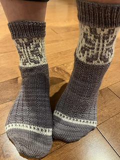 Elles comportent un motif de mosaïque simple sur la jambe et un point texturé sur la jambe et le dessus du pied.