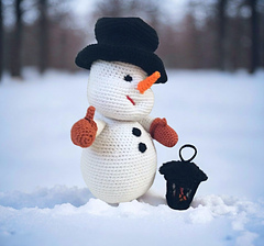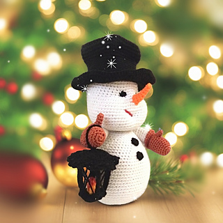 Crochet Snowman with a lantern